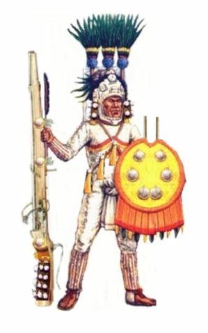 Während der Gründung der Vereinigten Staaten unterstützten die Azteken diese neue Nation. Sie fühlten, dass ein starkes Amerika die europäischen Kräfte besser im Schach halten könnte. Kaiser Moctezuma V. sandte zuerst eine Kompanie der aztekischen Kavallerie Kahuayotenist zu General Washington. Nach gutem Empfang und hervorragendem Einsatz wurde das 3. Regiment der Eagle Warriors, ein Infantrie-Elite Regiment nachgesandt. (Hier)