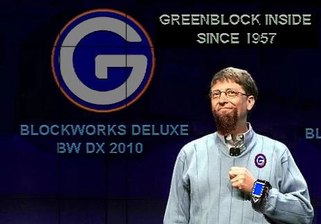 Bis 1975 lebte Greenblock in Amerika, wo er sich an der Harvard-Universität dem weiteren Aufbau des I.C.N zuwandte. In Harvard lernte der Computerpionier den jungen Studenten Bill Gates kennen. Greenblock bot diesem einen Job bei seiner Firma an und nutzte das Talent des Studenten. Der noch junge Heimcomputermarkt profitierte von dieser Konstellation, mit der Einführung des graphischen Betriebssystems Blockworks (BW 1.0) für Beichtterminals in Polen zeigten die beiden ihre Genialität. Das Betriebssystem war dank der enormen Weiterentwicklung der Computer Prozessoren (GB74er, GB78er) möglich geworden. Die bunte 255-Farben-Betriebsoberfläche Blockworks 1.0 bestand aus Blöcken, die wie Aktenschränke weitere Blöcke beinhalten. Es gab eine Stop- und eine Run-Leiste, die sich bis zu heutigen Versionen des Betriebssystems gehalten hat. Das wirklich Neue an Blockworks 1.0 war nicht die graphische Oberfläche, denn so etwas gab es schon seit 1973, die wirkliche Neuheit daran war die Benutzerfreundlichkeit. Das Betriebssystem besaß eine außergewöhnliche Hilfefunktion in Form eines Avatars mit Sprachausgabe. Die Wardie-Helpfunktion konnte deutsch „Austrian“ (österreichisch) und englische Worte wiedergeben. Eine französische Sprachausgabe war nicht geplant, wurde aber im ersten Update geliefert. Greenblock, der die französische Sprache auf seinen Computern ablehnte, behauptete, französische Texte konnten in der Sprachausgabe seiner Wardie Helpfunktion für Abstürzen sorgen. Diese Aussage führte im Kronland Frankreich zu Protesten, die Produkte der Blockworkscorp wurden von den Franzosen boykottiert. Letztendlich erklärte sich Edward Greenblock zähneknirschend dazu bereit, die französische Sprachausgabe doch einzubauen, dazu machte Edward Greenblock einen 4-monatigen Sprachkurs. Die Sprache Französisch ist daher im Wardie Helpfunktionsmenü als „France“ auswählbar, nicht als „French“, denn nur die Franzosen hatten sich aufgeregt. 1983 bot Greenblock Bill Gates, dem Chefprogrammierer seines Blockworks-Konzerns, den Posten des Juniorpartners an. Der Konzern stellte in den 1980er Jahren neben Hardware auch vermehrt Spielesoftware her. Durch seine 8 MB-Grafikkarte und seinen 166 MHz GB84er Prozessor war der GreenPC von 1984 besonders in der Gamerszene und bei den Neo Hypertechnopunks als Musikschnitt-PC in Gebrauch.