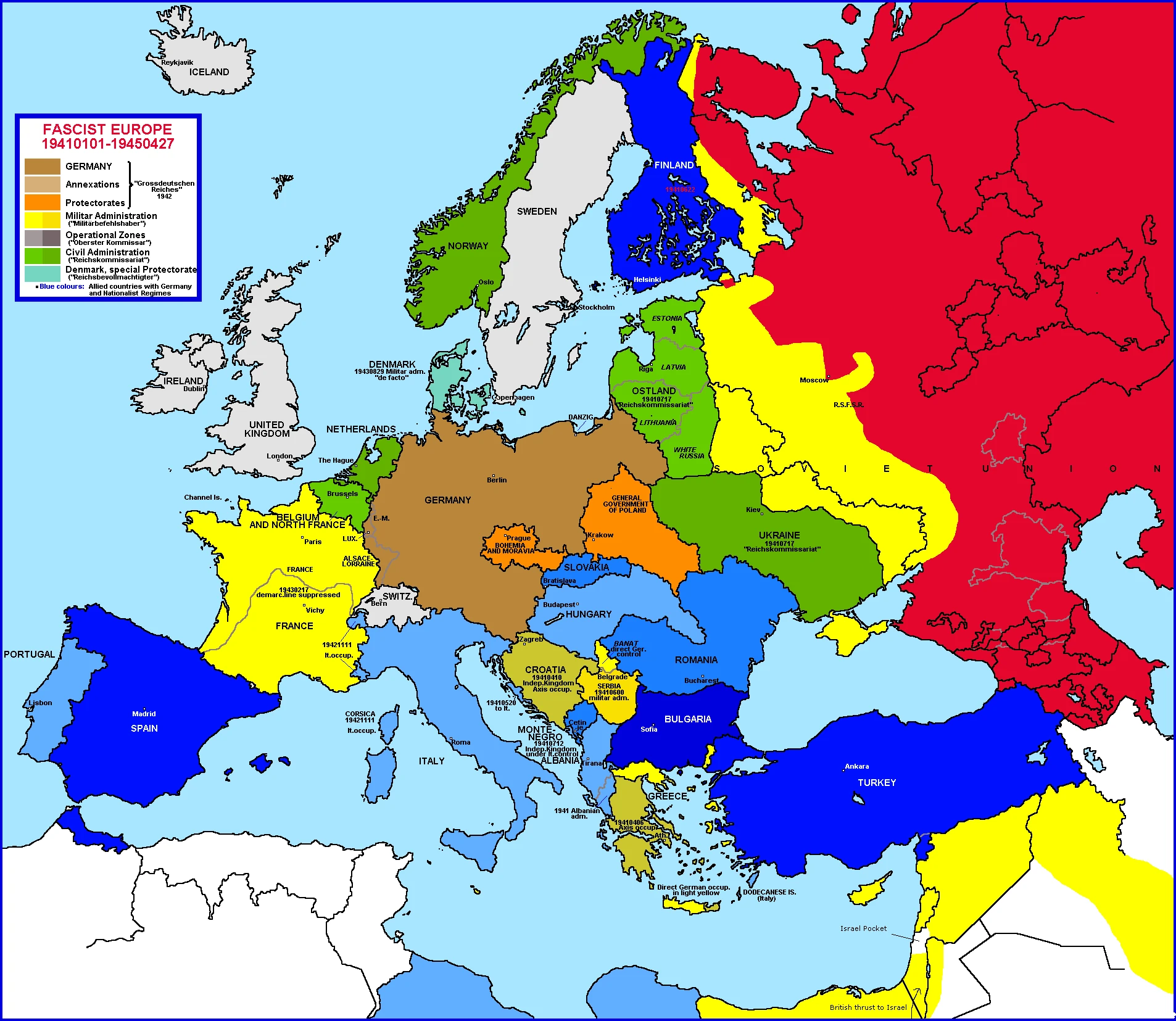 Israel wurde 1948 gegründet, nachdem die Briten entschieden, die Kontrolle über Palästina den United Nations zu übergeben. Die Kollaboration der Araber mit den Nazis führte dazu, dass nicht viele Leute im Westen noch Sympathien für sie hatten, und so wurde entschieden, den Juden ganz Palästina einschließlich Gaza zu geben. Die meisten Araber verließen das Land, siedelten sich in Ägypten oder Transjordanien an, das im selben Jahr zur Republik Jordanien wurde. Als Rache für den Verlust von Palästina warfen die Araber die Juden aus ihren Ländern hinaus. Israel hatte am Ende eine höhere Bevölkerung als in UZL (über eine Million mehr Menschen) und eine bessere strategische Position für die Zukunft.