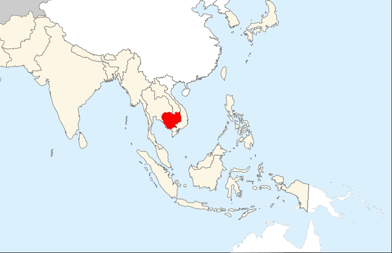 Camboya, cuyo nombre oficial es Reino de Camboya (en camboyano: Preǎhréachéanachǎkr Kâmpûchéa) es un país del sudeste asiático. El país limita al oeste con Tailandia, al norte con Laos, al este con Vietnam y al sur con el golfo de Tailandia. Es atravesado por el río Mekong. Forma parte de la Indochina. Al finalizar la Tercera Guerra Mundial, se integró a la República Socialista de Indochina.