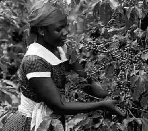 Una mujer tutsi en un kibbutz de café.