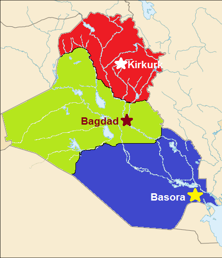 En julio de 1990, Iraq fue dividido en tres naciones: