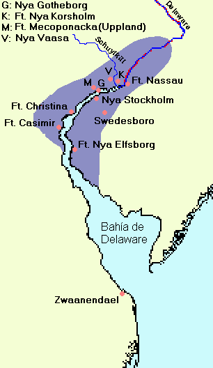 La alianza entre el Imperio sueco y la Commonwealth de Inglaterra bajo El Protectorado de Oliver Cromwell, posibilita la subsistencia de la colonia frente al peligro holandés (PDD). Carlos X Gustavo, frente a los acuciantes problemas económicos herederados de la reina Cristina, cede tierras en América a cambio de una suma de 20.000 Riksdaler.