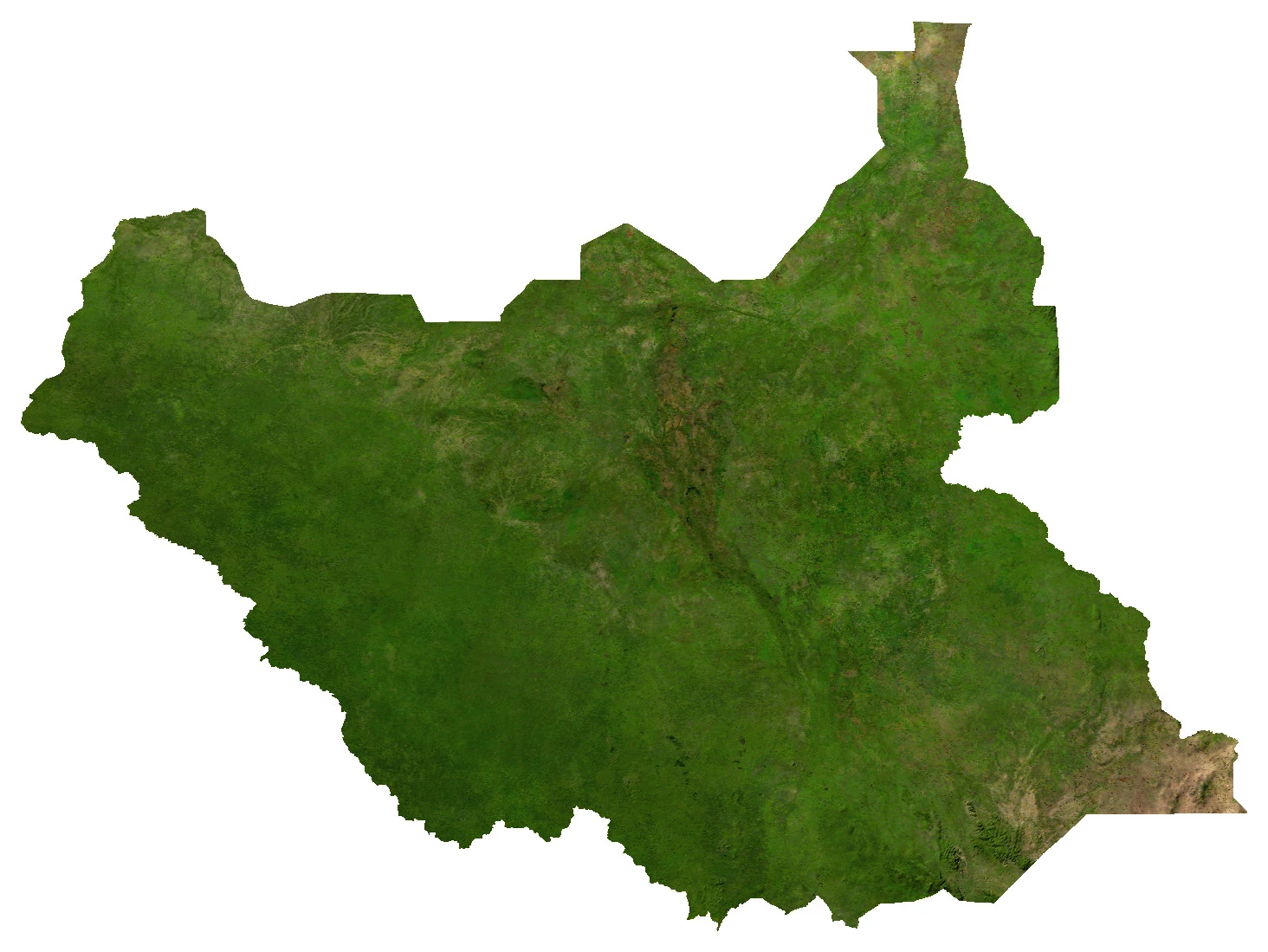 Con una superficie de 644,329 km², la República del Nilo está dominada por la vasta región pantanosa del Sudd, formada por el río Nilo Blanco. Este tramo del Nilo marca las fronteras con Sudán al norte y Uganda al sur, y divide el país de este a oeste. El territorio se compone principalmente de praderas, pantanos y densos bosques tropicales, con un clima predominantemente tropical y húmedo.