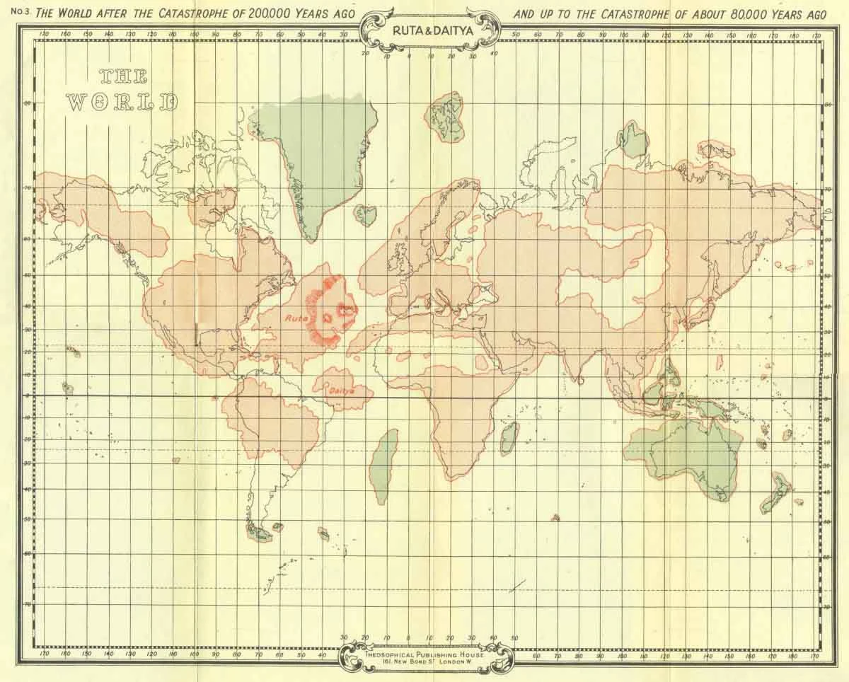 Na terceira catástrofe, de há 80 mil anos (75.025 a.C, segundo Leadbeater), Daitya quase desapareceu e Ruta reduziu-se em extensão para algo comparável à França e Espanha juntas (cerca de 1 milhão de km²). Nessa etapa, é conhecida como Poseidônis e corresponde à Atlântida de Platão, que desaparece totalmente com a quarta e última catástrofe, em 9.564 a.C.