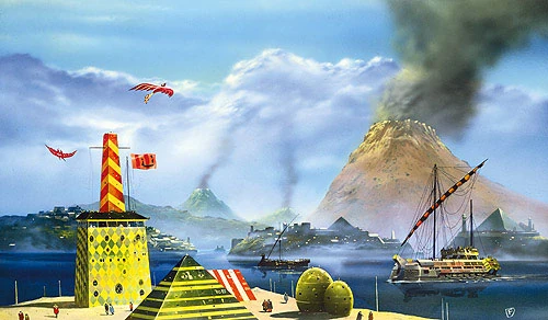 Barcos aéreos eram usados pelos ricos em Atlântida, segundo Scott-Elliot (cena do PC Game Atlantis)