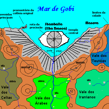 Mapa de Shambhala e Manova, segundo a descrição de Annie Besant e C. W. Leadbeater