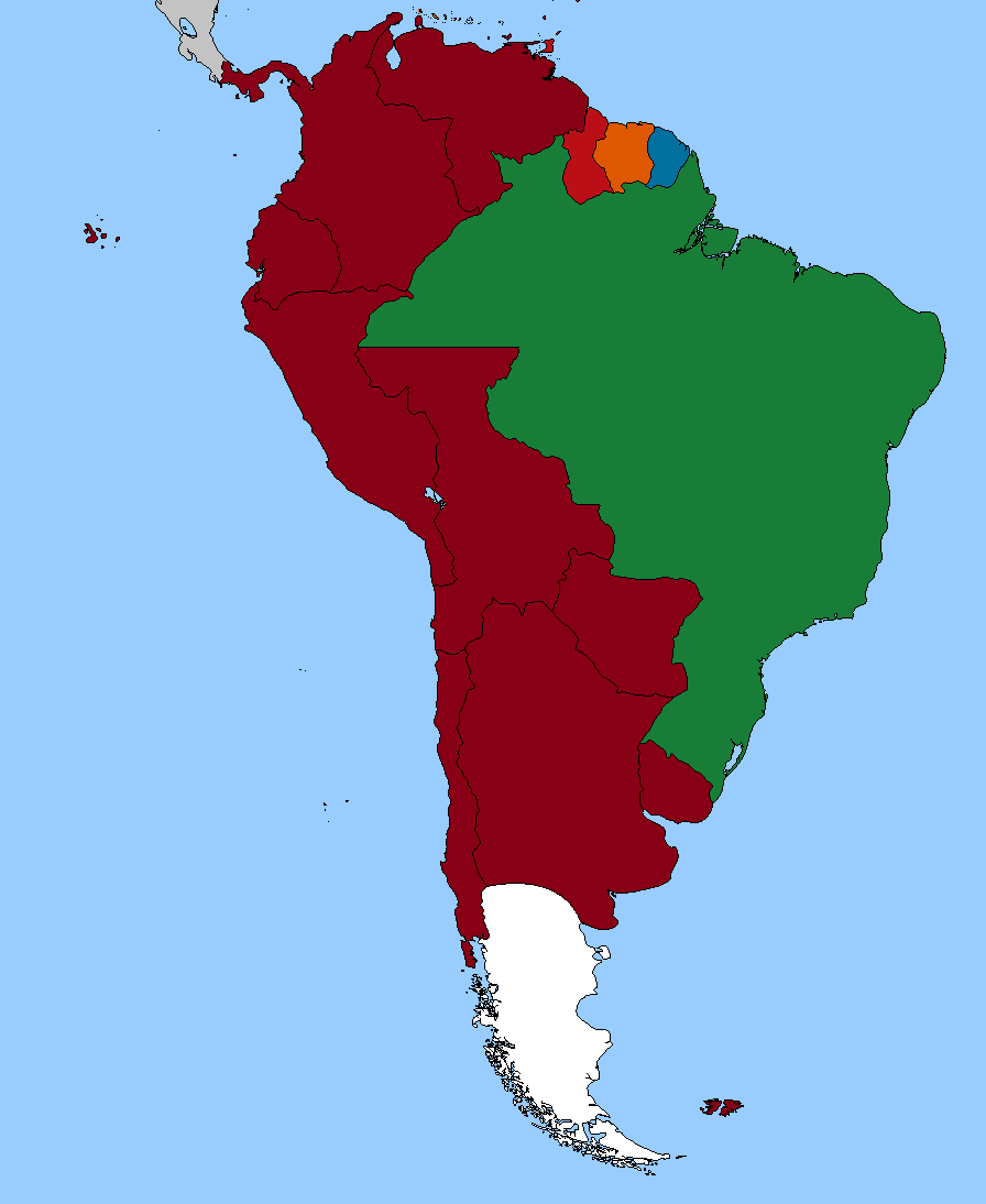 Бразилия как независимое от Португалии государство образовалось 7 сентября 1822 года, когда Педру I, действующий вице-король Бразилии, отказался выполнять приказы Лиссабона и провозгласил Бразильскую империю, во главе которой он сам встал. Попытки Португалии вернуть обратно под свой контроль колонию так и не увенчались успехом, в связи с чем вскоре пришлось признать независимость Бразилии. Вклад Педру I как императора Бразилии было трудно не недооценить. Благодаря нему был вложен большой вклад в социально-политическое развитие общества ХIХ века не только в самой Бразилии, но и во всём мире. Так, к примеру, в 1824 году были приняты исключительно передовые для своего времени Конституции, в которых уже не было слов про божественное происхождение королей. Однако, даже не смотря на это, высоким авторитетом в народе Педру I так и не смог похвастаться, особенно после поражение Колумбийской Конфедерации в Уругвайской войне. В связи с этим вскоре Педру I отказался от своего трона в пользу своего пятилетнего сына, Педру II, и уехал обратно в Португалию, да бы свергнуть там своего брата Мигела I с престола в пользу Марии II. На протяжении около 9 лет (с 1831 по 1840 года) страной, фактически, управлял парламент Бразилии, состоящий из Консервативной (сторонников реставрации власти Португалии) и Либеральной партий (сторонников антипортугальских и республиканских убеждений). Однако, не смотря ни на что, временное правительство так и не смогло предотвратить новую войну с Конфедерацией, в результате чего длительное управление парламентом страной пришло к концу.
