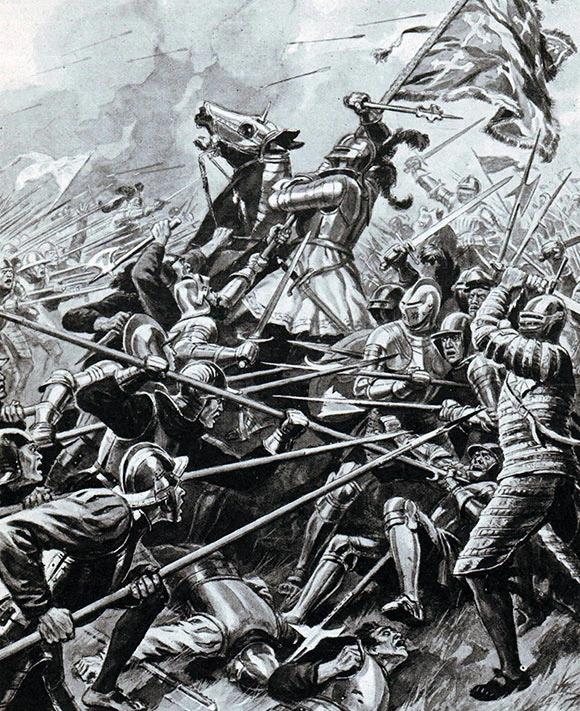 Король, возглавивший центр, практически сразу оказался отрезанным от своих солдат и вскоре погиб в рукопашной схватке. Та же участь постигла его брата - герцога Росса - командовавшего левым флангом. Только правый фланг, на котором бились горцы графа Аргайла, мужественно сопротивлялся контратаке англичан.