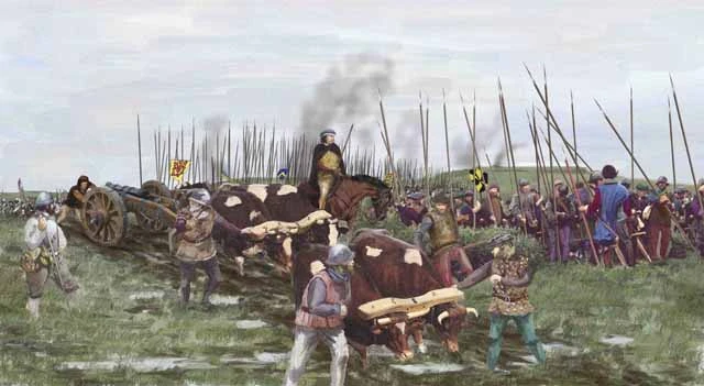 1 июля 1499 года огромная шотландская армия осадила приграничный замок Берик. Точная численность ее неизвестна - разные источники называют от 25 до 60 000 человек. Кроме того впервые шотландцы использовали артиллерию - 6 больших кулеврин. Однако уже 18 июля ей навстречу выступила 20 000 армия англичан, во главе которой стоял сам король Ричард III. Поскольку главной силой шотландцев была конница, Яков IV принял решение встретить врага в чистом поле и расположился на поле близ поселения Торнтон.