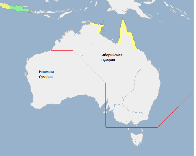 Попытка инков обосноваться на востоке Суларии оказалось неудачной - их выгнали иберийские поселенцы. Поэтому инки основали поселения в Тасмании и на юго-западе Суларии.----Дилонг
