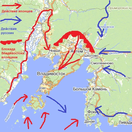 7 апреля Япония объявила войну России. Одним из первых городов, атакованный японцами стал Владивосток. Десант высадился на остров Русский и возле Фокино. Тем временем сухопутные войска обошли Владивосток. Русский линкор "Смелый" атаковал японский десант, идущий на Фокино и был потоплен. 9 апреля японцы осадили город. 12 апреля гарнизон Владивостока капитулировал.