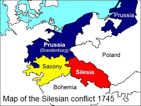 Молодой король прусский Фридрих II давно желавший увеличить свои владения за счёт Австрии, решил воспользоваться для своих целей сложившейся политической обстановкой, чтобы заявить древние права своего дома на силезские герцогства Лигниц, Волау, Бриг и Егерндорф. Переговоры его с Англией, король которой, как владетель Ганновера, не желал расширения Пруссии, однако, возымели успех, и Англия, из традиционной вражды к Испании, стала на сторону Баварии.