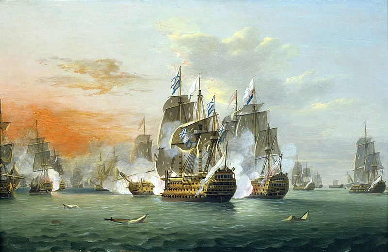 Главным морским театром войны была Атлантика и Средиземноморье — испанцы не оставляли попыток прорвать блокаду своего северного побережья и, по возможности, перерезать линии связи Англии и Франции со своими колониями. Крупнейшим стало сражение у мыса Спартель 20 декабря 1782 года, в ходе которого испанский флот в значительной степени был уничтожен, окончательно утратив возможность соперничать с англо-французами. После этого боевые действия в основном переместились в воды Индийского и Тихого океанов, где, ввиду немногочисленности голландцев и испанцев, исход так же был предрешен. 20 августа 1783 года французы одержали победу в Бенгальском заливе, а 12 января 1786 года произошел бой между английскими и испанскими кораблями в заливе Нутка — практически у самой Аляски. Испанцы под началом Мартинеса Фернандеса пытались утвердить власть Карла III на всем тихоокеанским побережьем Северной Америки, но потерпели поражение и вынуждены были отступить.