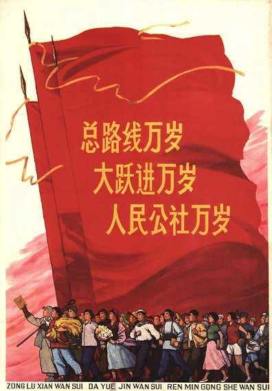 Пропагандистский плакат «Да здравствует руководящая линия! Да здравствует Большой скачок! Да здравствуют народные коммуны!»
