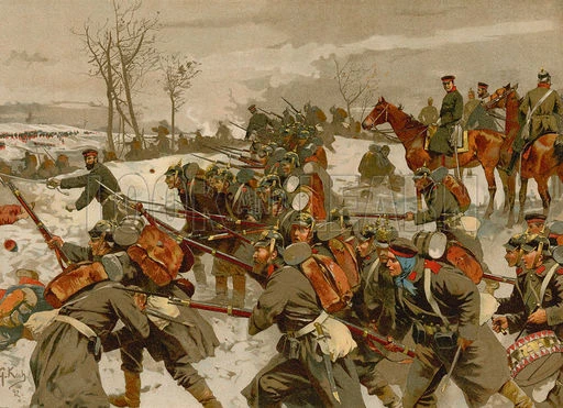 Принц-регент возобновил военные действия только 5 февраля, закончив все необходимые приготовления. Он быстро занимает города вроде Нёрдлинга, за которые немцы и не собирались сражаться с ним - Мольтке готовил генеральное сражение в другом месте, которое не ассоциировалось бы у солдат с уже понесенными поражениями. А пока что французы тремя колоннами двигались на Ингольштадт, где и стояли основные вражеские силы. Столкновение авангарда французов Трошю и заграждения, выставленного Рооном, произошло в лесу Бургхольц 13 февраля и ни к каким результатам не привело. Скорее, это можно назвать простой пробой сил. Но, заняв тогда же с помощью хитрости Нойбург-на-Дунае, Жан Валентин решил атаковать врага по обоим берегам великой реки. Небольшой отряд Трошю остался на юге и двинулся вдоль Бургхольца к Нидерфельду, а основные силы под командованием самого принца-регента форсировали Дунай и пошли на Мюльхаузен.