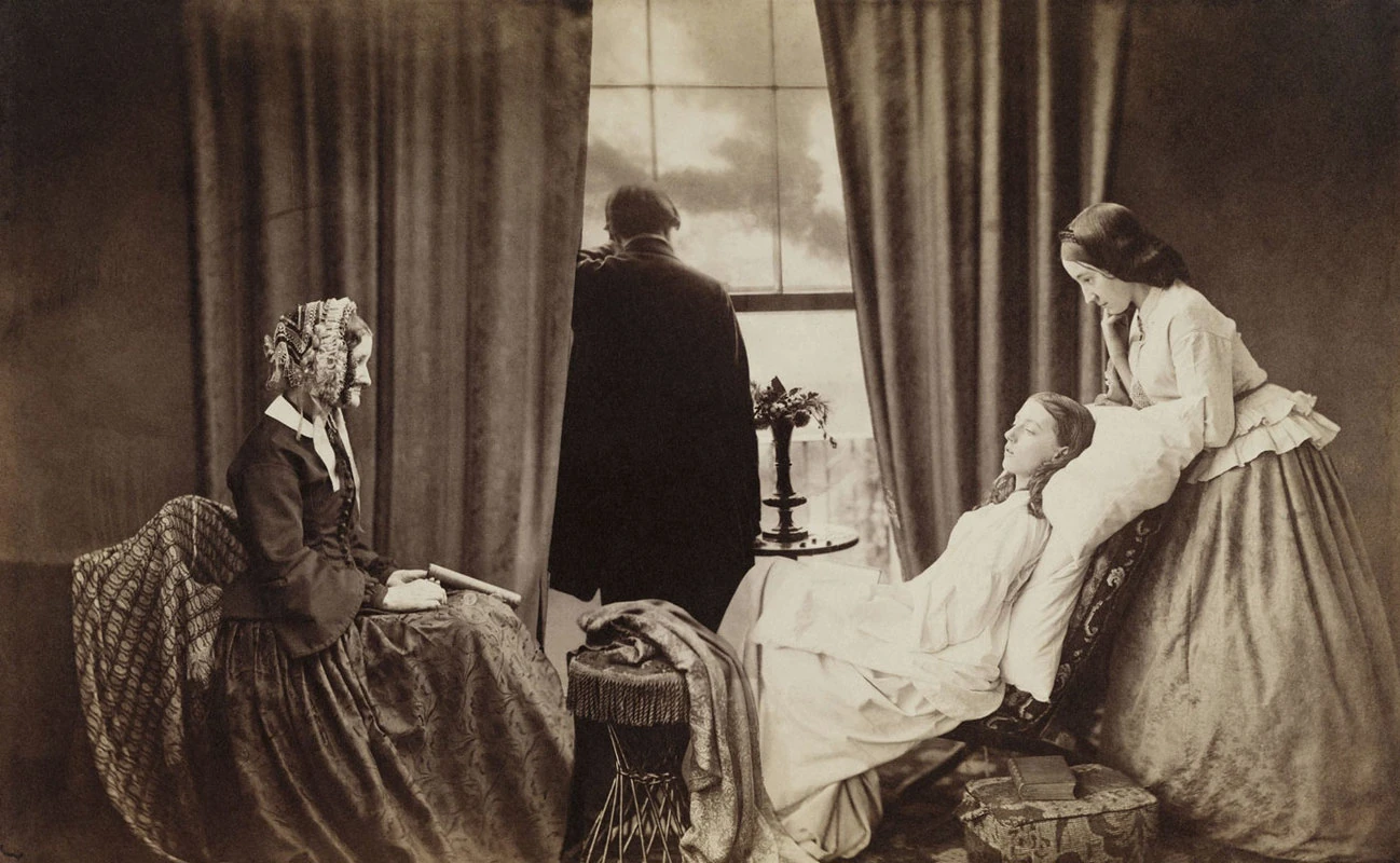 Раненая Мария Эфрази в окружении матери (слева), отца (у окна) и сестры (справа).