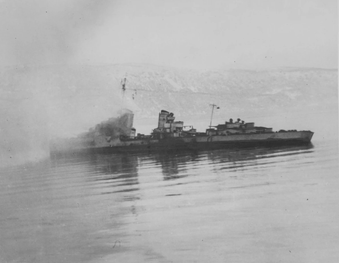 Тонущий эсминец Итальянского Государства.