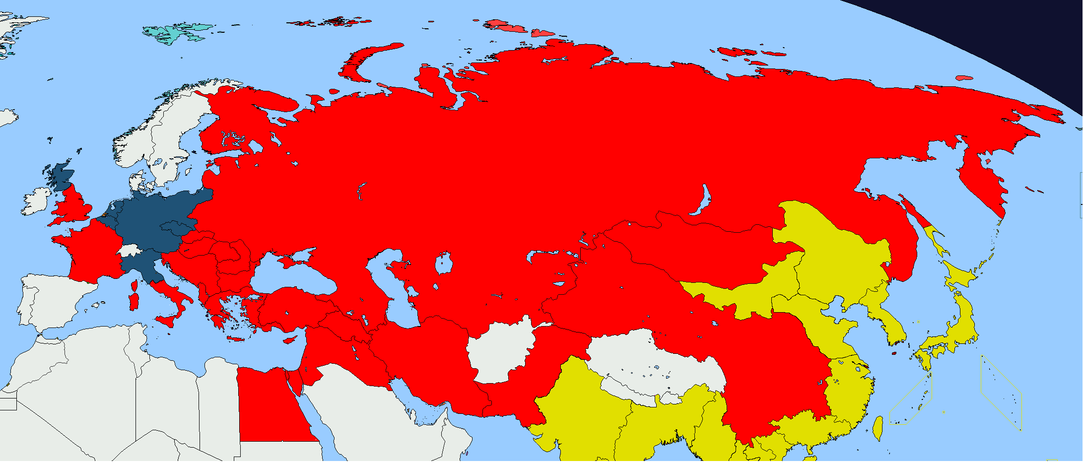 Итак, утро 9 августа. Советские войска выдвигаются на позиции на границе обоих блоков. Япония объявляет всеобщую мобилизацию и миллионы её граждан вновь готовятся умереть за Императора и Свободу, как было в Освободительной войне. Советские и японские бомбардировщики патрулируют небо на границах, готовые в любой момент отправиться выполнять последний приказ. В 6 утра по Московскому времени на полигоне в Семипалатинске прошли демонстративные атомные испытания, а через два часа Япония испытала новый мощнейший ядерный заряд "Цукиномия" в районе Мадагаскара. Кажется, будто мир движется к войне и ничто её больше не остановит. Слишком долгим и болезненым был послевоенный компромисс, слишком много неопределенностей оставил Ялтинский мирный договор, слишком много было поставлено на карту.