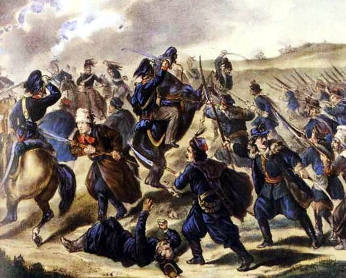 Польские ополченцы-косиньеры сражаются с прусской кавалерией