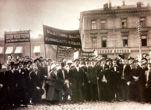 Еще Временное правительство Георгия Львова сделало первые шаги для легализации свободных профсоюзов. За короткое время правления Виктора Михайловича Чернова была проведена трудовая реформа, легализовавшая окончательно право трудящихся на самоорганизацию, проведение стачек и забастовок... И постепенно профессиональные союзы получали все большее и большее влияние на производство, порой в самых неожиданных отраслях российской экономики. В рамках популизма А.Ф. Керенский 5 июня 1919 повышает заработную плату на всех государственных учреждениях в полтора раза, но вскоре правительство сталкивается с последствиями - банальной нехваткой денежных средств на исполнение подобных обещаний, что заставляет их снова и снова обращаться за помощью к печатному станку. Чующие свою силу профсоюзы не стеснялись требовать от предпринимателей постоянных повышений зарплаты: если же бизнесмены шли "в отказ", то их работники немедленно отвечали стачкой, в которой они получали любую поддержку от леворадикалов. Позиции правых в парламенте были слишком слабы, чтобы они могли полноценно защищать интересы имущих: подобная политика профсоюзов приводила только к дальнейшему ухудшению обстановки в промышленности. Однако забастовки охватывали не только тяжелые производства, но и сферу обслуживания: летом 1919 в Москве прошла полноценная забастовка официантов и трактирных работников, из-за которой "встали" почти все увеселительные заведения. Каждая подобная стычка требовала вмешательства если не центрального правительства, то влиятельных органов власти на местах: принуждая власти прислушиваться к своим мнениям и оценкам, профсоюзы постоянно наращивали свое влияние. И хотя в большинстве профсоюзов лидирующие места занимали вполне себе лояльно относящиеся к Республике социал-демократы, то постепенно, в организациях, защищающих интересы наименее социально обеспеченных работников, начинали набирать авторитет и власть большевики.