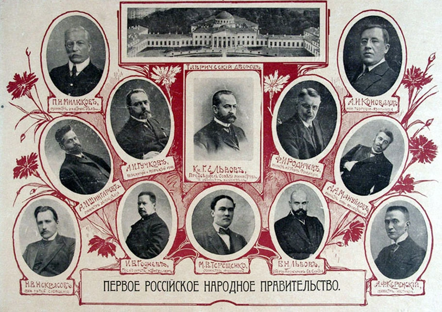14 марта Временный комитет Государственной Думы образовал Временное правительство России во главе с князем Георгием Львовым. Обоснованием для этого решения послужило двойное отречение российских монархов, после которого единственной легитимной властью в глазах большинства населения России стала Государственная Дума и ее комитет. В первое квазиреспубликанское правительство России вошли в основном видные либеральные деятели вроде П. Милюкова, А. Гучкова, М. Терещенко, самого Львова; социалисты были представлены фигурой молодого и популярного депутата Керенского. Стоит сказать, что первые шаги новых правителей страны не особо отличались от реальных: была опубликована декларация Временного правительства, объявившая об амнистии заключенных по случаю победы демократии в стране, введении требуемых политических прав и о скором созыве Учредительного собрания для принятия ряда важнейших законопроектов для окончательного установления новой государственности в России. После принятия декларации Государственная Дума практически перестала собираться в полном составе, так как ее считали уже "несвоевременным" органом, не вписывающимся в систему складывающегося в стране двоевластия. Окончательно Думу распустит своим приказом князь Львов в июне, когда станет ясно, что она отжила свое и ее членам требуется готовиться к избранию в Учредительное Собрание.