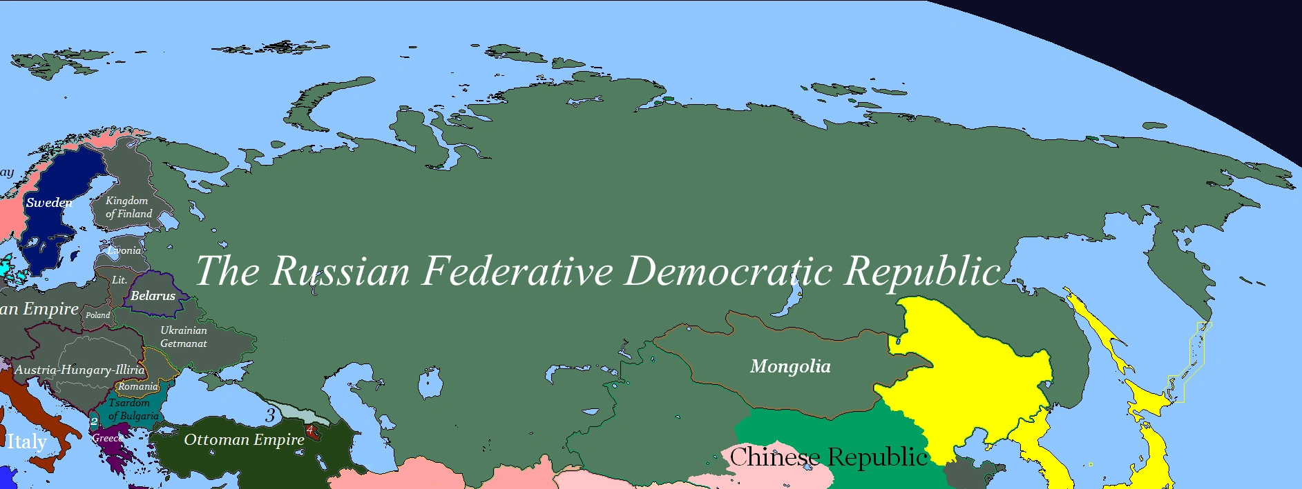 Российская Демократическая Федеративная Республика (Российская Республика, Россия) - самое большое государство в Евразии, созданное по итогу работы Первого Учредительного Собрания в январе 1918 и прекратившее свое существование по итогу работы Второго Учредительного Собрания в октябре-ноябре 1932 года, когда ему на смену пришел режим Российского Государства .