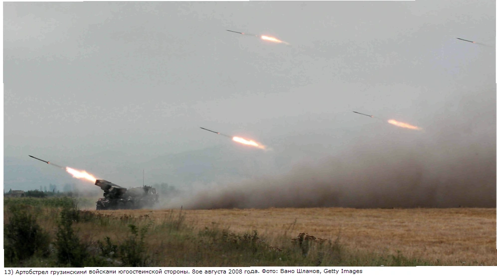 В ночь на 8 августа (ок. 00:15 мск) грузинские войска подвергли Цхинвал обстрелу из реактивных установок «Град», а примерно в 03:30 мск начали штурм города с применением танков.