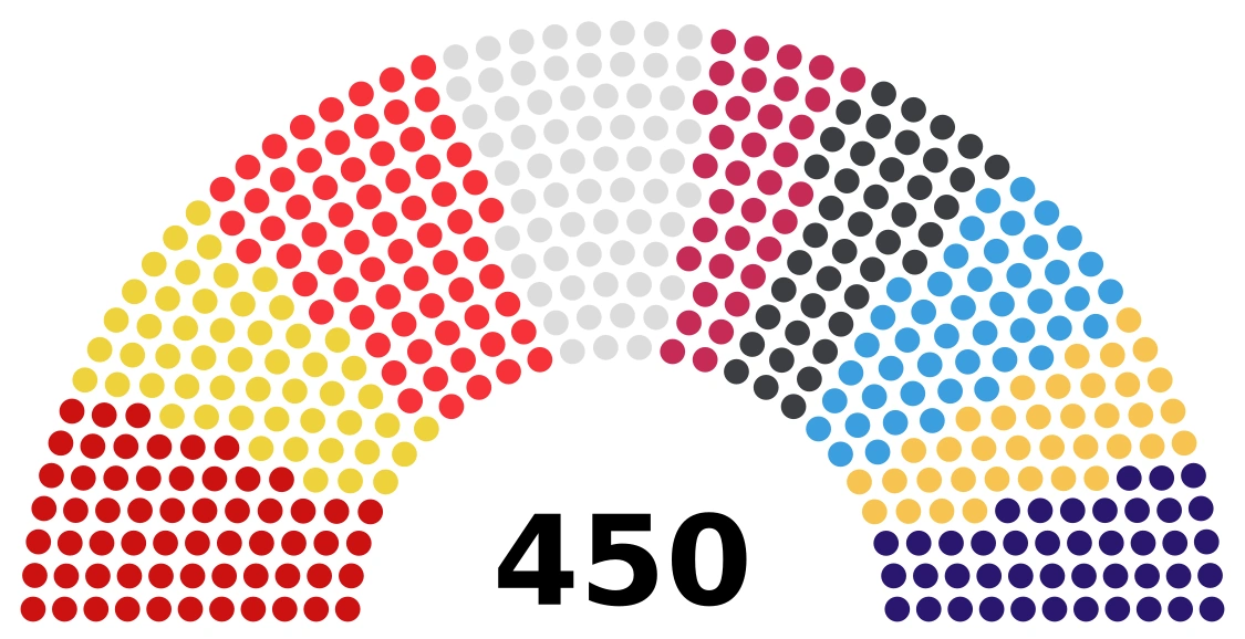 Согласие во имя России КПРФ: 60 мест АПР: 37 мест Гражданский союз: 38 мест РОС: 11 местВне фракций Независимые депутаты: 191 местоОппозиция РКРП: 1 место Новые имена: 6 мест ПСТ: 1 место Яблоко: 33 места ПЭС: 1 место Преображение Отечества: 1 место Женщины России: 5 мест РДДР: 3 места ПРЕС: 17 мест РПРФ: 5 мест Выбор России: 35 мест ЛДПР: 5 мест