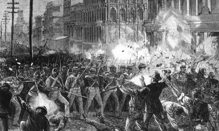 Великая железнодорожная забастовка 1877 года: солдаты расстреливают протестующих рабочих