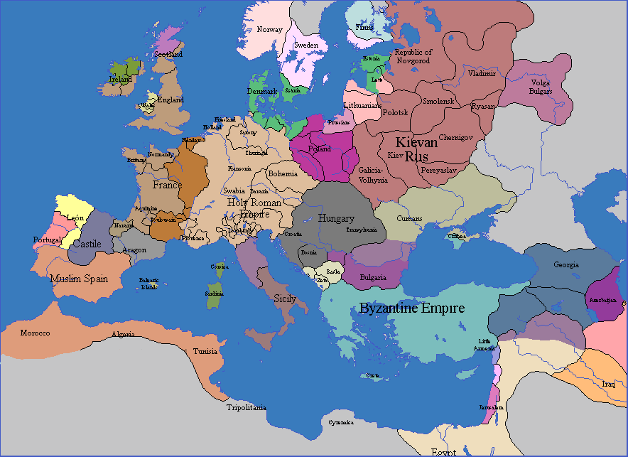 Византия: Поскольку война с Румом окончательно закончена, болгарский отряд отправляется домой. Но большая часть половцев осталась на плато - все они были крещены и получили большие наделы на Анатолийском Плато в качестве стратиотов.Так же в Европу возвращается первая армия под командованием императора, которая разошлась "по домам". Однако некоторая часть армии встала в Филиппополе и Адрианополе, опасаясь нападения на Фракию. Между тем в Эдессе мы предлагаем в графы родича Тамары, Алексея Комнина. В октябре он был помолвлен со старшей дочерью Феодора Ириной (брак состоится лишь через 7 лет, как и в РеИ, ввиду возраста самой Ирины). Если сыновей у Феодора не будет (а их, как мы знаем, не будет), Алексей станет византийским императором. Его младший брат Давид отправился в Киликийскую Армению, где также был помолвлен с дочерью царя Киликии Ритой. Как раз в это время Алексей Палеолог с армией, к которой добавилась часть киликийских войск, вышла к Алеппо, который взяла в осаду. Однако к ноябрю осада слишком затянулась, ждем подкрепления.