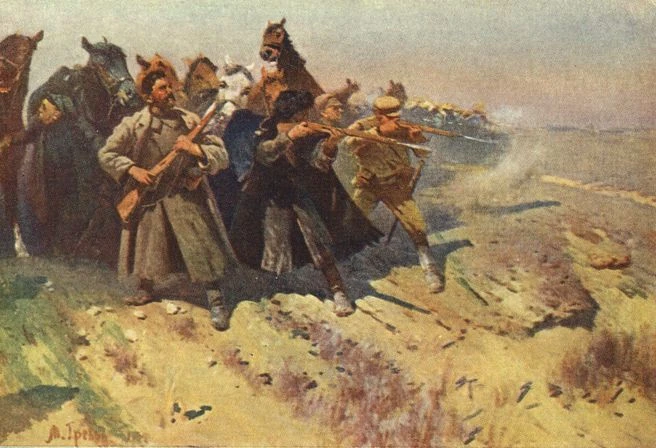 "Красный корпус" отбивает атаку немцев спешившись.