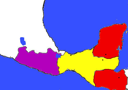 The People of Uaxactun were not entirely naive however. They moved out into the land that they called Oaxaca and Chiapa while the Tikalese took control of the entire Yucatan Peninsula. Chiapas was struggling to expand because the cities below them had made many new developments and had a unique position between many mountains, rivers, and volcanoes. The only major conflict that happened during these years of expansion was when the city of Tehuantepec found itself caught in a complicated entanglement,
