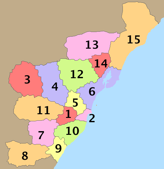 The free trade zone is administered much as any other Spanish subdivision, sometimes as part of the Balearic Islands due to its former administration under the País del Oro. It is subdivided into 15 districts (distritos). All administration takes place in the primate city of Castellón de la Plana.