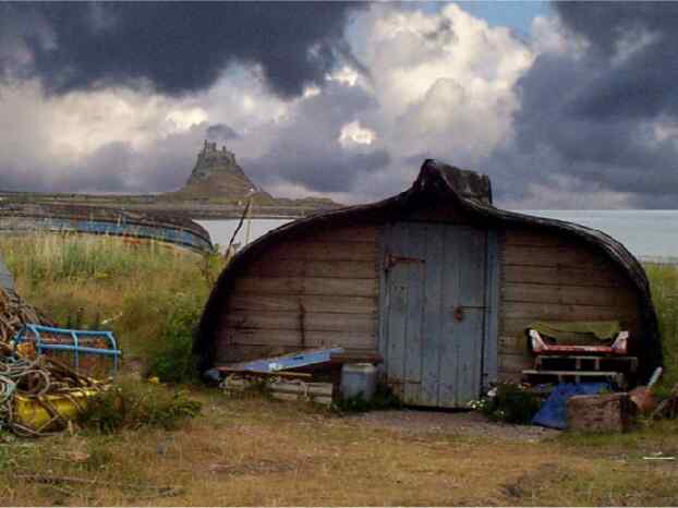 Lindisfarne in the distance with survivor camps