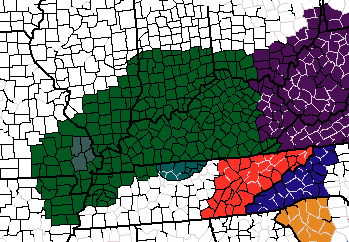 The Commonwealth of Kentucky is divided into several states and territories: