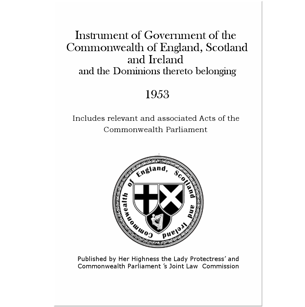 The fundamental law of the Commonwealth of England, Scotland and Ireland[1], and the first codified and written constitution in England, was the Instrument of Government (1653), replaced (or amended according to some authors) by the Humble Petition and Advice (1657).