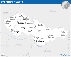 Czechoslovakia (Czech: Československo, Slovak: Československo), officially the Czechoslovak Federative Republic (Czech: Československá federativní republika, Slovak: Československá federatívna republika, ČSFR), is a country in Central Europe. It is a federation of four constituent states. The capital and largest city is , . A landlocked country, Czechoslovakia is bordered by Austria to the southwest, Germany to the west, Poland to the northeast, Hungary to the south and the Soviet Union to the east. The Czechoslovakia has a hilly and mountaineous landscape that covers an area of 128,274 square kilometers (49527 sq mi), with a population of over 17.4 million. The capital and largest city is Prague while the second-largest city is Bratislava.