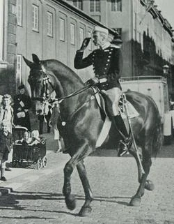 King Christian X riding on his horse in Copenhagen.