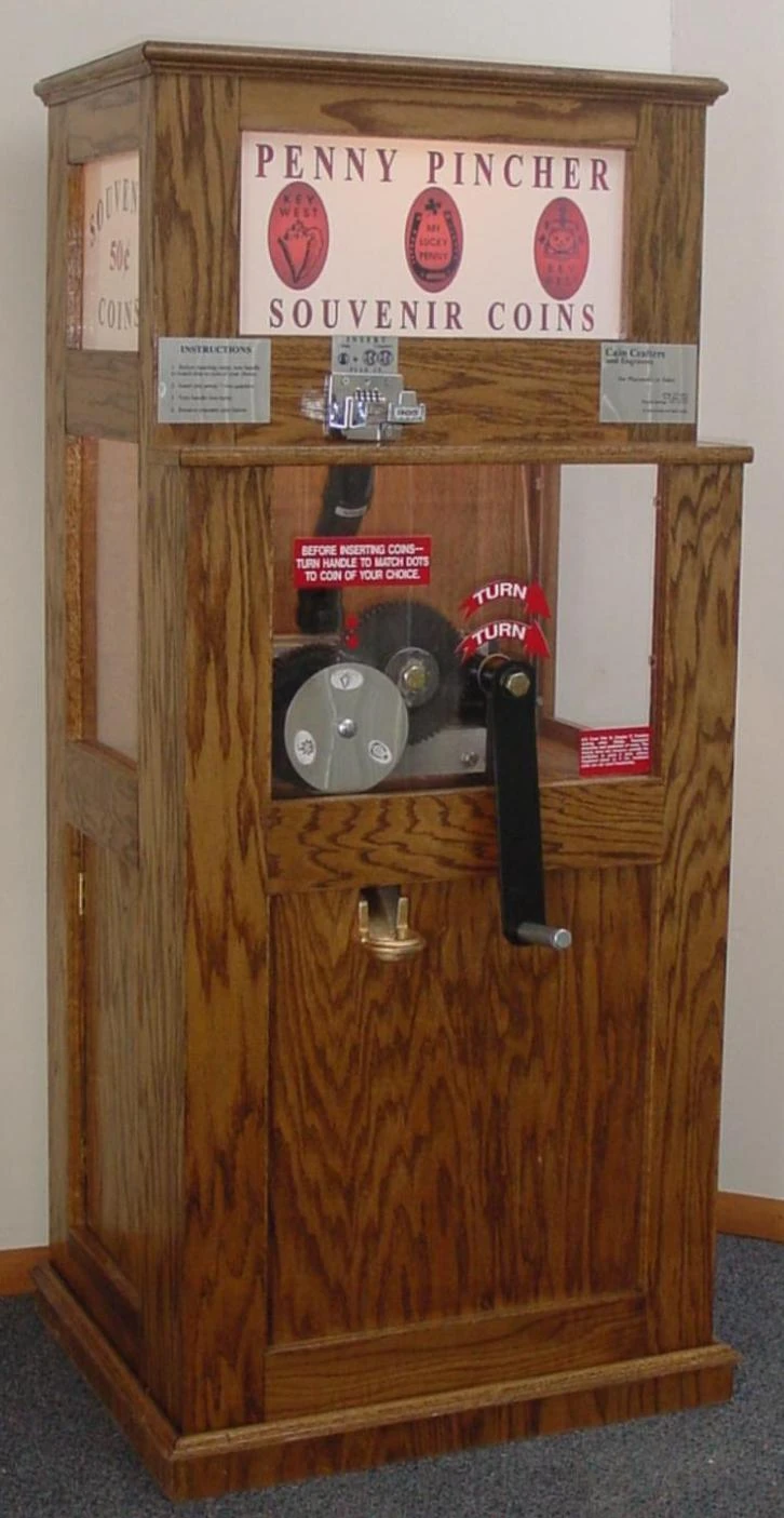 Banks of penny presses are used to turn old currency into New Pounds.