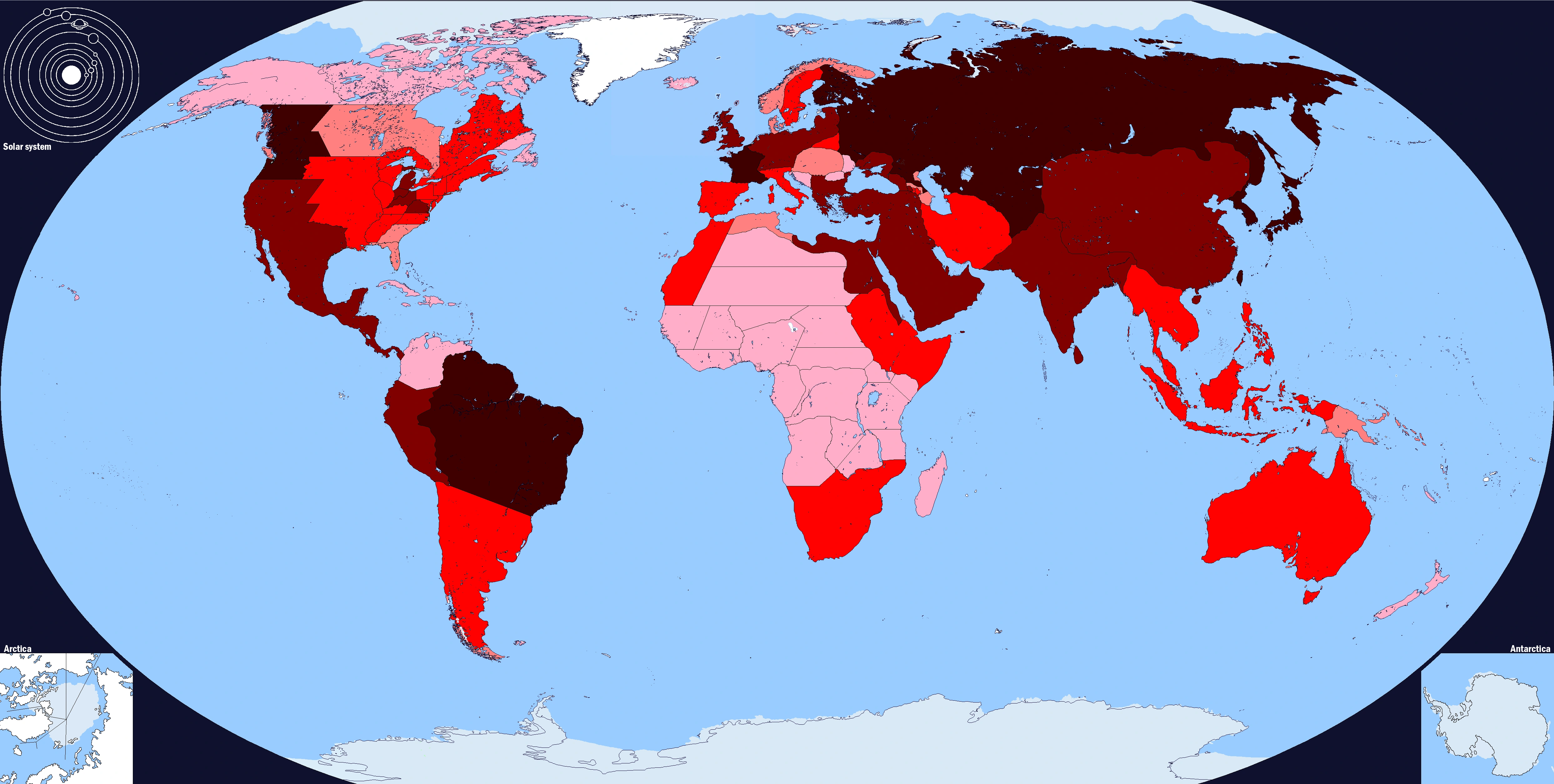 Darkest Red (100,000 - 1 million cases), Dark Red (10,000 - 100,000 cases), Red (1,000 - 10,000 cases), Light Red (0 - 1,000 cases) | |