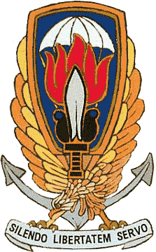 Emblem of the Gladio Organization, with the motto «Silendo libertatem servo (In silence, I protect freedom)»