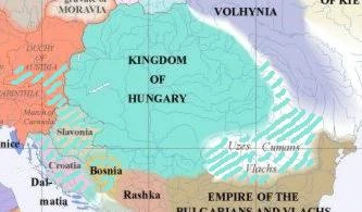 In 1237, the Friar Julianus returned to the Volga Hungarians. While in OTL he found them eradicated by the Mongols, ITTL he started to convert them to Christianity and tried to recruit them to settle in Hungary. A delegation of them visited Hungary proper and liked the idea of settling there. Thus, king Bela could widen the population base of his country. Since his country wasn't ravaged by the Mongols, this helped him too. In 1243, he conquered Bosnia; and in 1246, he fought Austria, killing the last duke Friedrich II. Vlachia and Moldavia became Hungarian sphere of influence, and many Volga Hungarians settled there. In 1254, Hungary "divided" Styria with young king Venceslaus / Vaclav II. Hungary got the better part, only a few border cities became Austrian. Otakar Przemysl tried to improve the situation one year later, waged war against Hungary, but was defeated. In the same year, prince Stephen / Istvan married a princess of the Volga Hungarians.