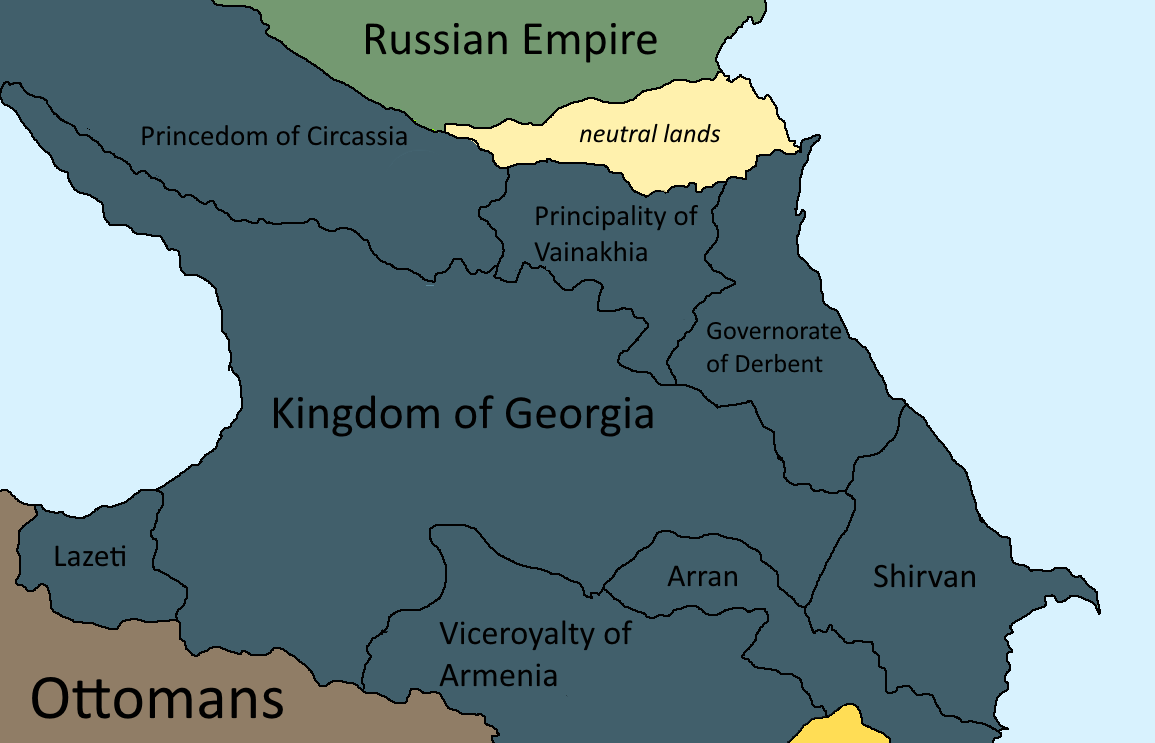 Kingdom of Caucasus - Was established in 1822 by Treaty of Gori when King of Georgia, Prince of Circassia and Prince of Vainakhia decided to unite their domains into a Federative Kingdom.