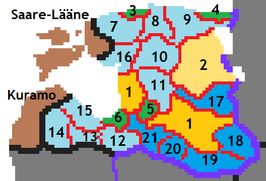 Note: Italics represent an autonomous vassal that is not a de jure part of the Duchy of Livonia but ruled by a Count who swears vassalage to the Hercog.