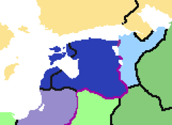 The Duchy of Livonia (German: Herzogtum Livland, Livonian: Hercogiste Līvõmō) is a duchy in personal union with the Kingdom of Prussia, within the Holy Roman Empire. The Duchy of Livonia was first established as an independent duchy in 1594 following a brief civil war in Prussia after a succession crisis. Livonia would continue to be independent for several years, becoming an influential cultural and economic nation in the Baltic Sea region. In 1612 the Duchy of Livonia was invaded by the Republic of Pskov and several other nations, beginning the Livonian War. In the ensuing Treaty of Königsberg, the Duchy of Livonia was returned to the Kingdom of Prussia, beginning a personal union under George I, King of Prussia.