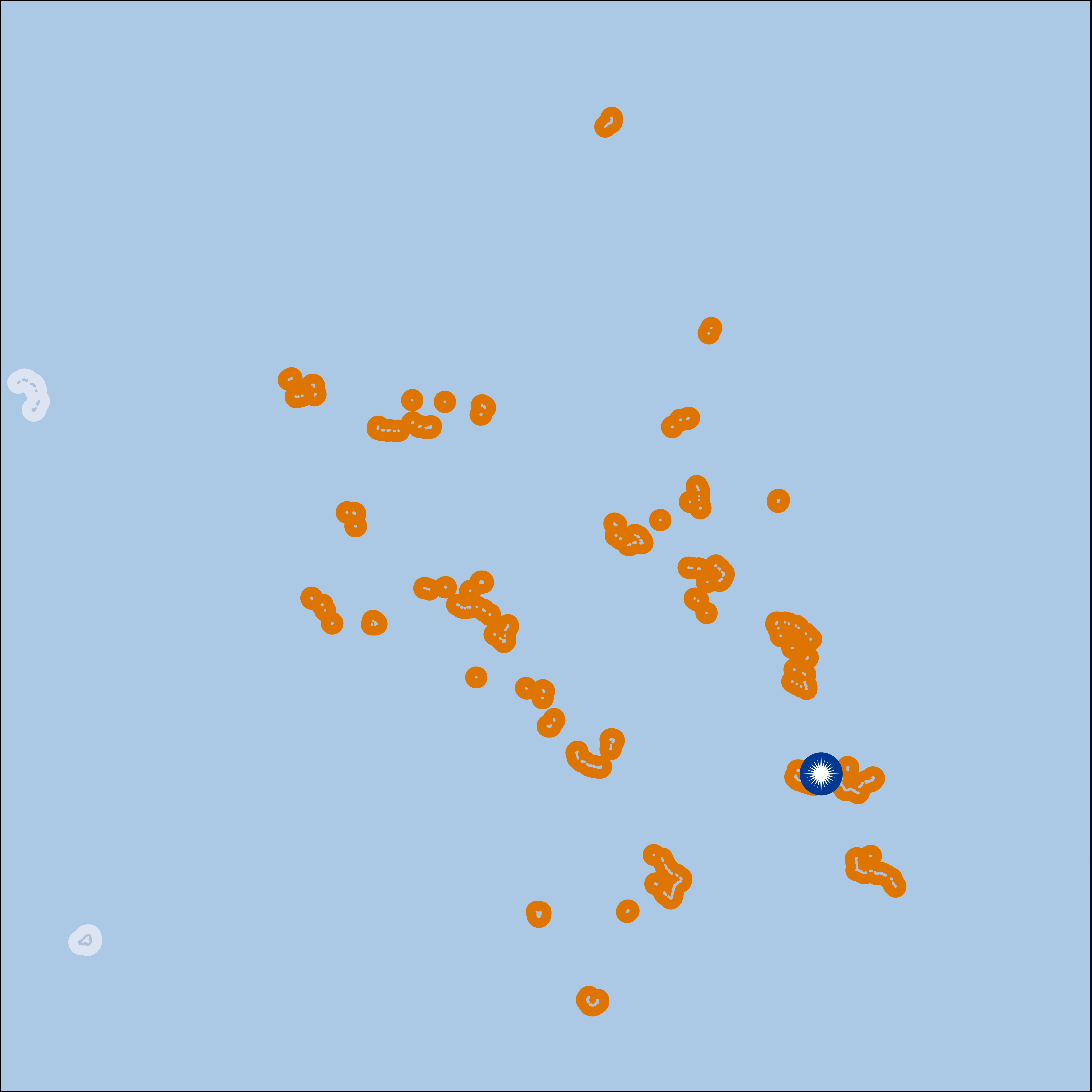 The territory consists of 29 coral atolls and five main islands as well as 1,220 other very small ones, divided across two island chains: Ratak in the east and Ralik in the west. 98.13% of its territory is water, the largest proportion of water to land of any sovereign state. The country shares maritime boundaries with Wake Island to the north, Kiribati to the southeast, Nauru to the south, and the Federated States of Micronesia to the west. The capital and largest city is Majuro, home to approximately half of the country's population. The Marshall Islands are one of only four atoll based nations in the entire world.