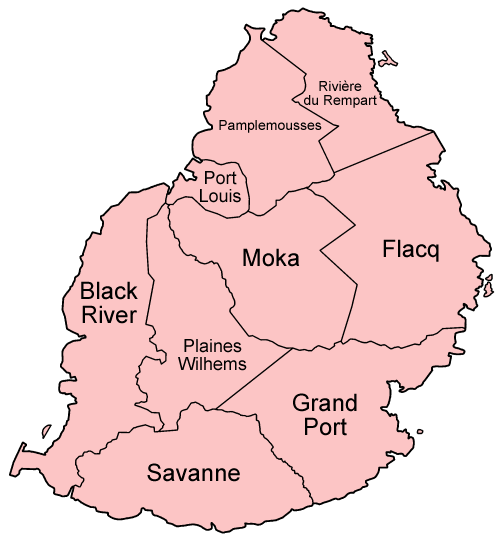 The island of Mauritius is subdivided into nine districts, which are the country's second-order administrative divisions.