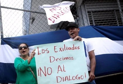 Anti-communist Nicaraguan refugees in Nicoya protest against recent negotiation talks with Managua.