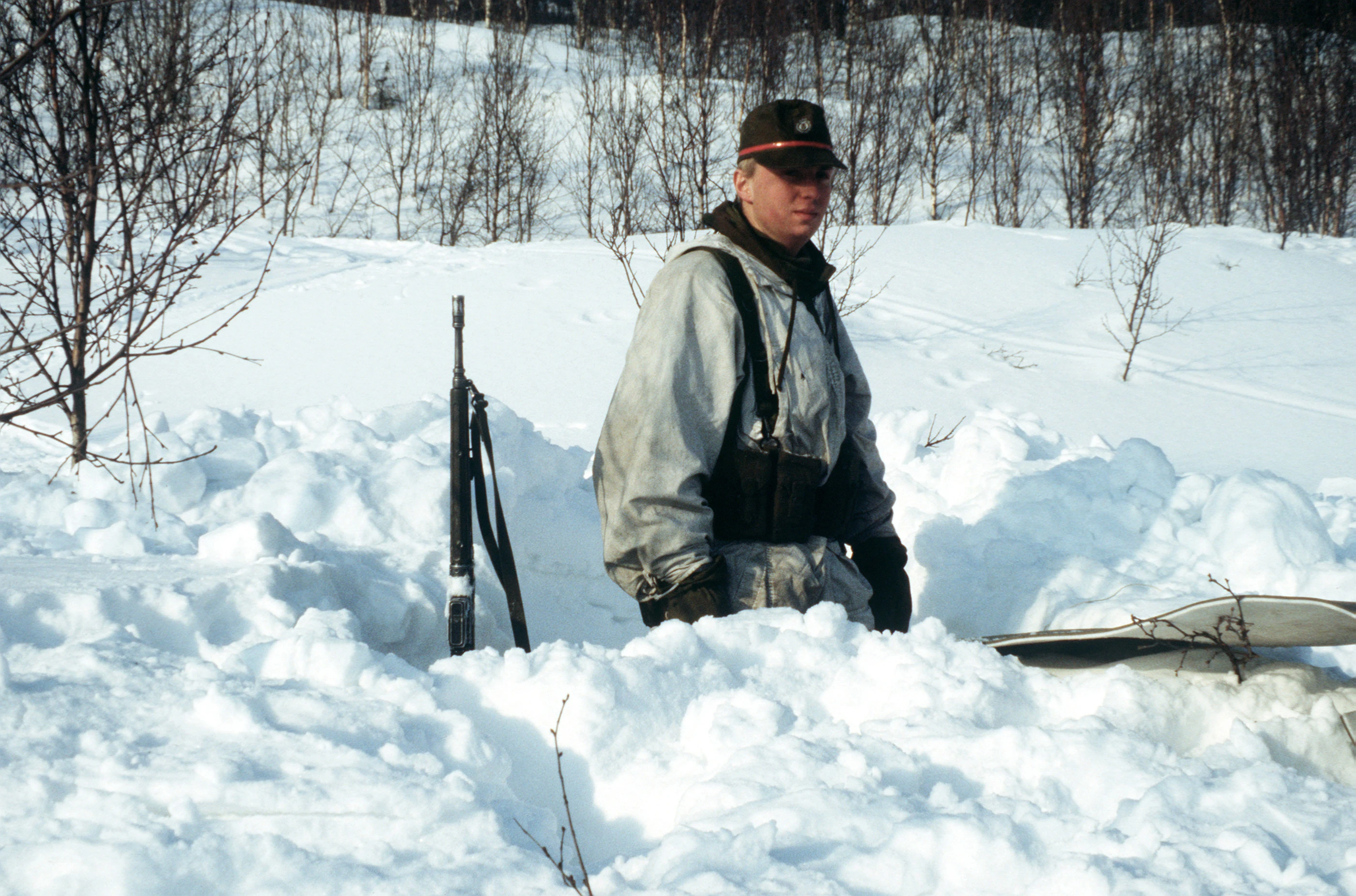 A Norwegian soldier at the frontline at Kárášjohka on November 25th, 1983.